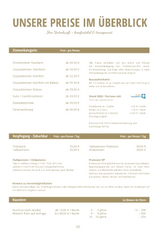 Verpflegung - Zubuchbar Preis - pro Person / Tag Preis - pro Person / Tag